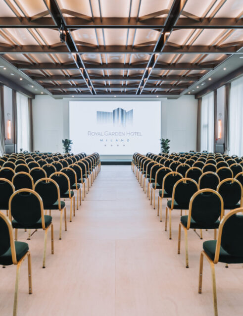 La Sala Congressi del Royal Garden Hotel, la più grande dell'albergo, può ospitare fino a 340 persone o essere suddivisa in due spazi da 120 persone ciascuno. Situata al piano terra, dispone di pareti vetrate con vista sul giardino e un videowall di 6x3 metri.